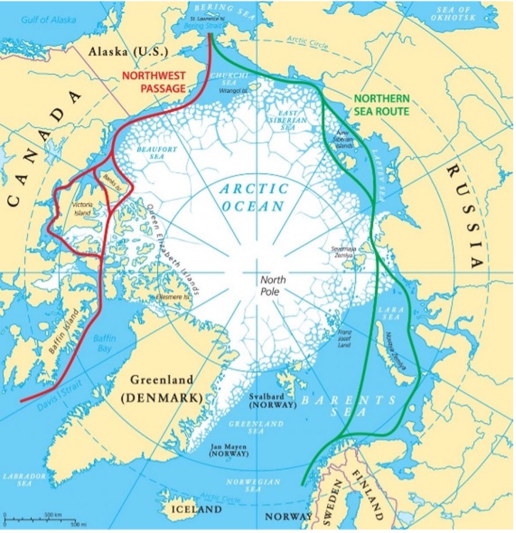 Дэлхий дулаарал, аж үйлдвэржилтийн нөлөөгөөр Гренландын хойгийн мөсөн давхарга маш хурдацтай хайлж байгаагаас үүдэн хэдхэн жилийн дараа буюу 2050 он гэхэд Арктикт мөсгүй зун үзэх болно гэсэн таамгийг эрдэмтэд дэвшүүлжээ. Энэ нь тун удахгүй Арктикийн асар их баялгийг олборлоход хялбар дөхөм болж, түүнд хүрэх зам харгуй ч чөлөөтэй болж Атлантын далайгаас Номхон далай хүрэх хамгийн дөт усан зам нээгдэх боломж ойртож буйн илрэл.